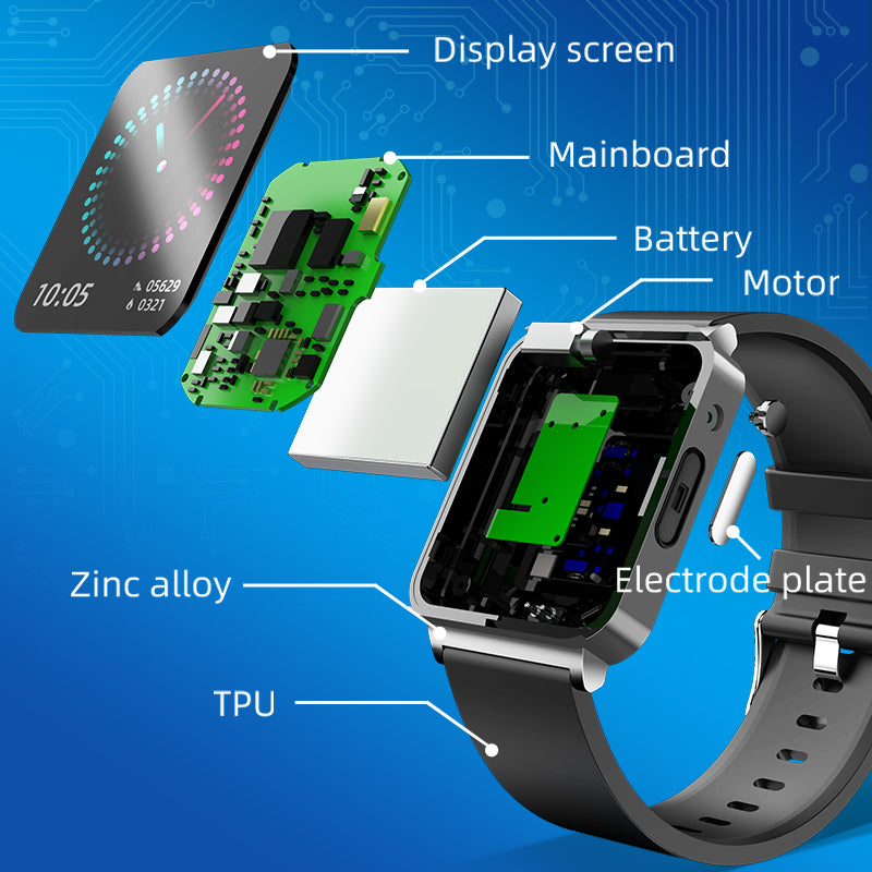 Wrist ECG test function, smart and portable to measure at any time,ECG sensor according to the l lead standard superconducting powder metallurgy technology to collect the heart's ECG waveform(EcG). The detection principle are the same of the hospital's machine.discover abnormalities in time to assess sudden risks.