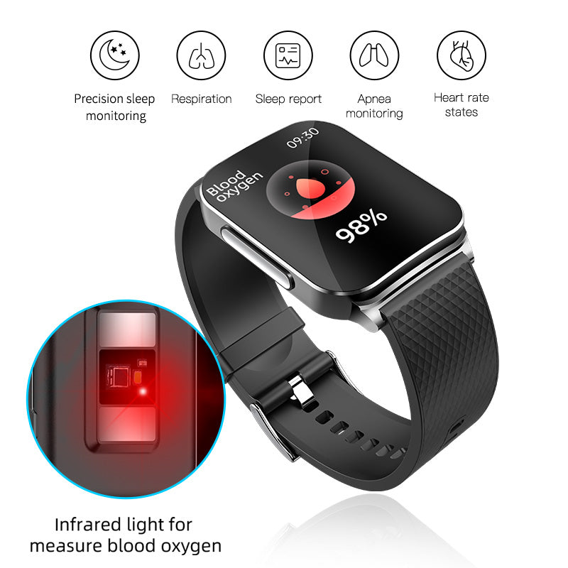 Snoring accompanied by short-term apnea when sleeping,main issues is hypoxia.This also can lead to other complications of hypoxia, severe as phyxiaor heart failure.Smart bracelet will automatically and continuously monitor blood oxygenation ofthe sleeper at night (0-7 o'clock) vibrate during low oxygen risk to remind sleepers to adjust their sleep gestures or wakefulness, which can effectively guarantee safety.