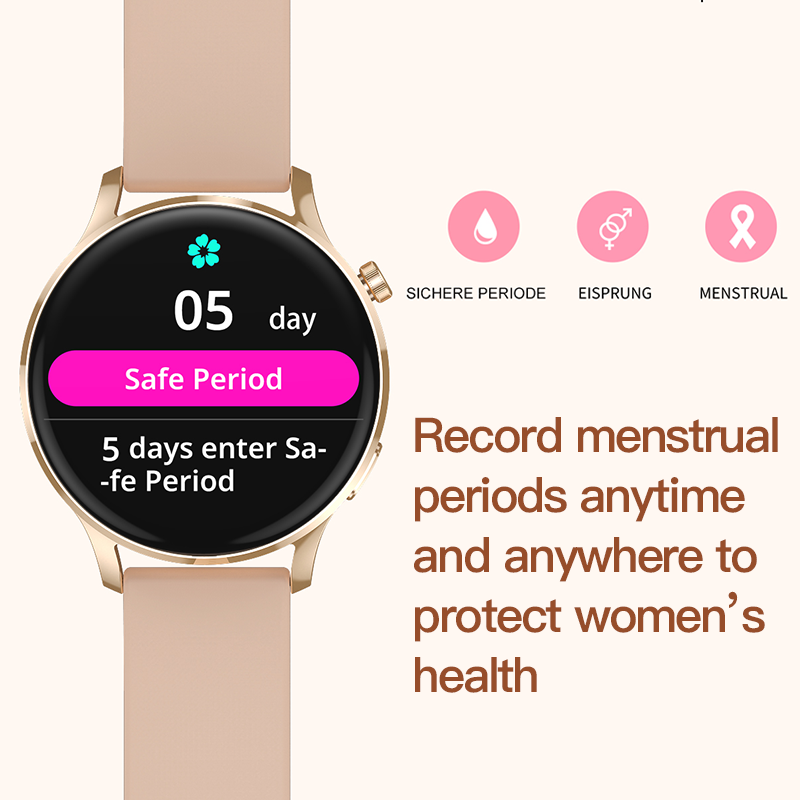 Built-in Female Cycle Tracking. Stay informed with gentle reminders for your safety period, menstruation period, and ovulation period. Receive thoughtful status alerts that adapt to each phase, keeping you in tune with your body.